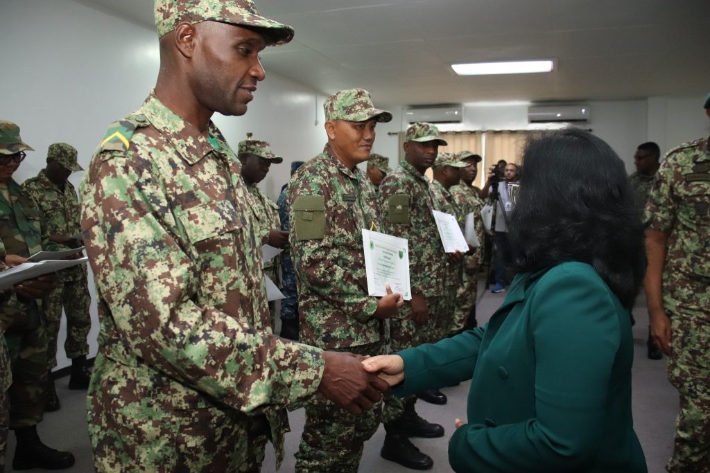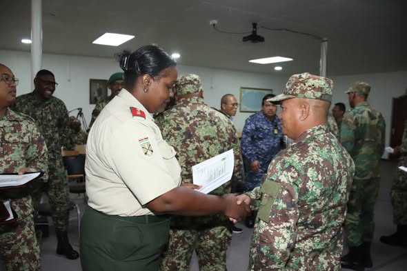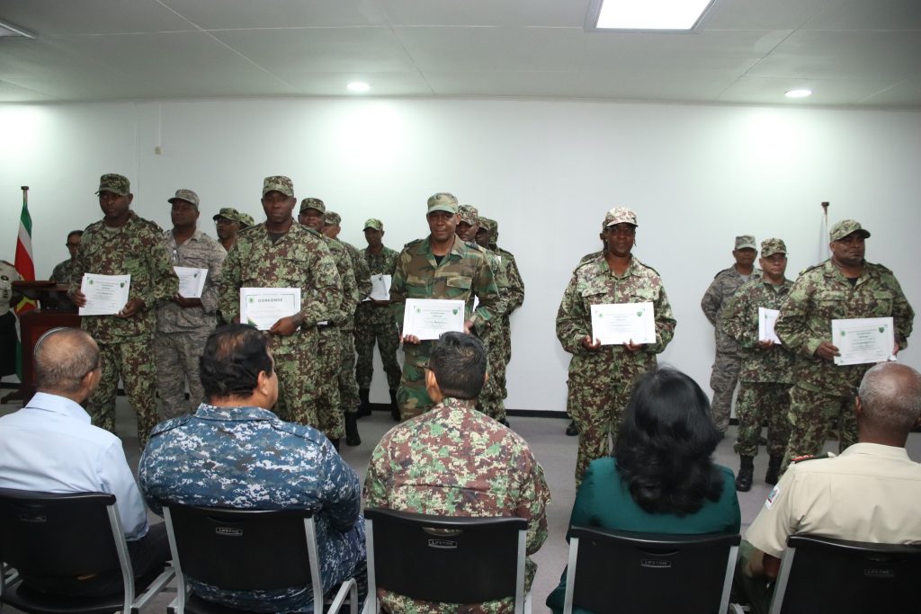 34 militairen hebben met succes de Cursus tot Groepscommandant (klas 2025-02) afgerond bij het Instituut voor Defensie Opleidingen (IDO). Deze cursus, die als doel had om vakbekwame onderofficieren op te leiden, heeft ongeveer vijf maanden geduurd en bestond uit zowel theoretische als praktisch trainingen. “Als onderofficier bent u de ruggengraat van het Nationaal Leger. Een belangrijke schakel tussen de manschappen en de officieren. In de meeste gevallen bent u ook de directe leider van de manschappen. U bent hun aanspreekpunt. Naast de leiderschapskwaliteiten die een onderofficier dient te bezitten, moet u ook in staat zijn om het personeel te motiveren, coachen en te begeleiden”, gaf kapitein Dyoma Blokland, commandant van de Militaire School (MS), de geslaagden mee.