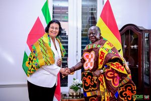 Ashanti-koning Osei Tutu II heeft onderhoud met president Simons