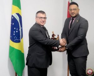 Minister Uraiqit Ramsaran van Defensie heeft op vrijdag 26 september 2025 een kennismaking gehad met de ambassadeur van de Federatieve Republiek Brazilië in Suriname, Felipe