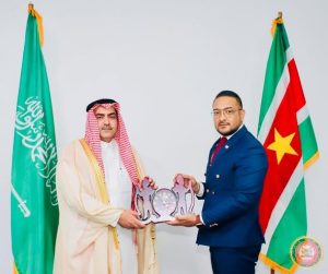De minister van Defensie, Uraiqit Ramsaran, heeft de ambassadeur van het Koninkrijk Saoedi-Arabië, Abdullah Muhammad Alsaihani, ontvangen voor een beleefdheidsbezoek. Tijdens het onderhoud werd gesproken