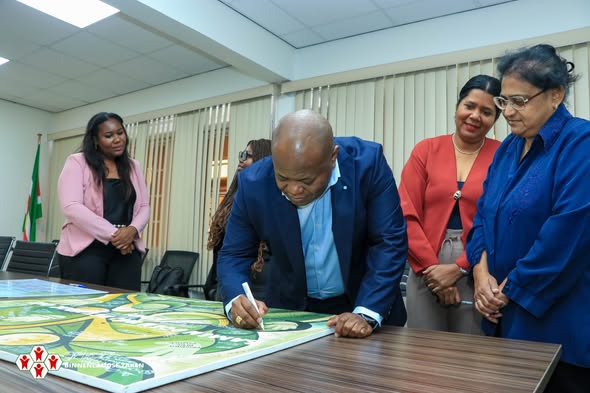 Het Ministerie van Binnenlandse Zaken (BiZa) heeft vandaag een belangrijke overlegbijeenkomst gehouden in de vergaderzaal van het ministerie. Hierbij kwamen vertegenwoordigers van verschillende ministeries bij elkaar om de voortgang, knelpunten en toekomst van het migratie- en inburgeringsbeleid in Suriname te bespreken. Het overleg werd als bijzonder aangemerkt vanwege het gezamenlijke verantwoordelijkheidsgevoel rondom migratievraagstukken. Eén van […]
