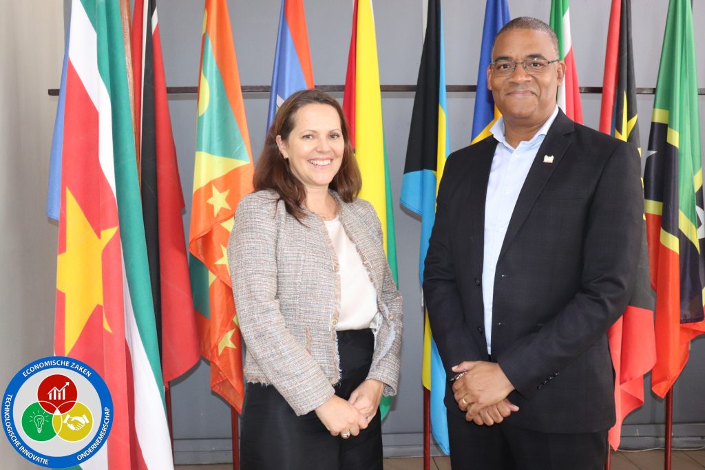 De ambassadeur van Ierland met als standplaats Brasilia, Martin Gallacher, en de ambassadeur van het Koninkrijk Zweden, Maria Velasco hebben een kennismakingsbezoek gebracht aan de minister van Economische Zaken, Ondernemerschap en Technologische Innovatie (EZOTI), Andrew Baasaron. Tijdens dit bezoek was ook de directeur van Ondernemerschap, Karishma Mathoera aanwezig. Er is van gedachten gewisseld over verschillende onderwerpen die van belang zijn voor de verdere economische ontwikkeling van Suriname. De nadruk lag hierbij op de diversificatie van de economie in samenhang met de ontwikkelingen in de olie- en gassector, het verhogen van de nationale productie met focus op industrieontwikkeling, en het stimuleren van local content door middel van ondernemerschapsbeurzen en samenwerkingsinitiatieven. De bezoeken hebben op maandag13 oktober 2025 plaatsgevonden in de vergaderzaal van EZOTI.