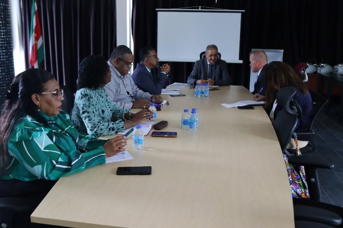 De onderminister van Volksgezondheid, Welzijn en Arbeid (VWA), dr. Raj Jadnanansing, heeft op donderdag 23 april 2026 de heer Paul Watzlavick, Chargé d’Affaires van de Amerikaanse ambassade in Suriname voor een beleefdheidsbezoek ontvangen.