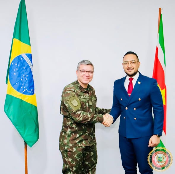 De minister van Defensie, Uraiqit Ramsaran, heeft de Northern Military Commander van het Braziliaanse leger, generaal José Ricardo Vendramin, ontvangen voor een beleefdheids- en werkbezoek. De generaal werd vergezeld door de Braziliaanse ambassadeur in Suriname, Felipe Costi Santarosa en staf.