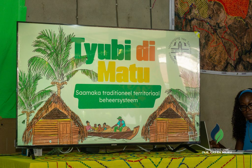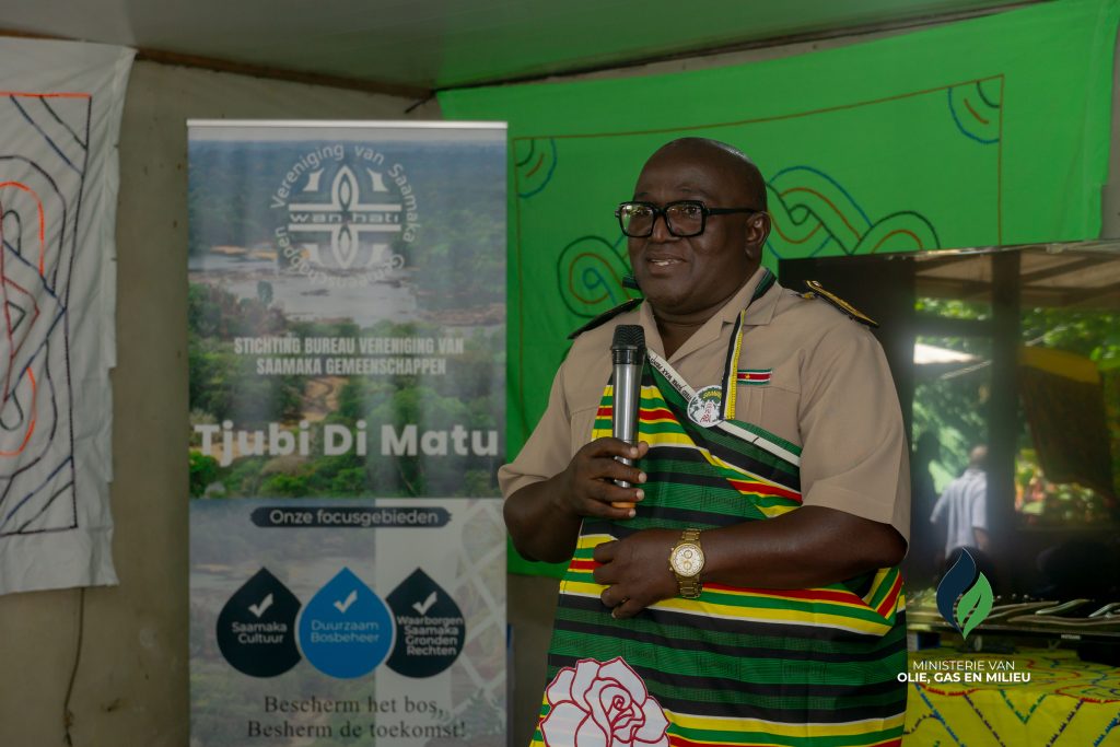 Na welkomstwoorden van districtscommissaris Jeru en vertegenwoordigers van het traditioneel gezag, waaronder Kapitein Bernard van Dalen van Nieuw Aurora, werd ingegaan op een belangrijk project van de VSG dat is uitgevoerd in samenwerking met de internationale organisatie Re:wild. Binnen dit project zijn de traditionele leefgebieden van vijf Saamaka-lo’s (clans) systematisch in kaart gebracht. Waar kennis over het gebruik van het bos traditioneel mondeling werd doorgegeven, zijn deze gebieden nu ook cartografisch vastgelegd.
