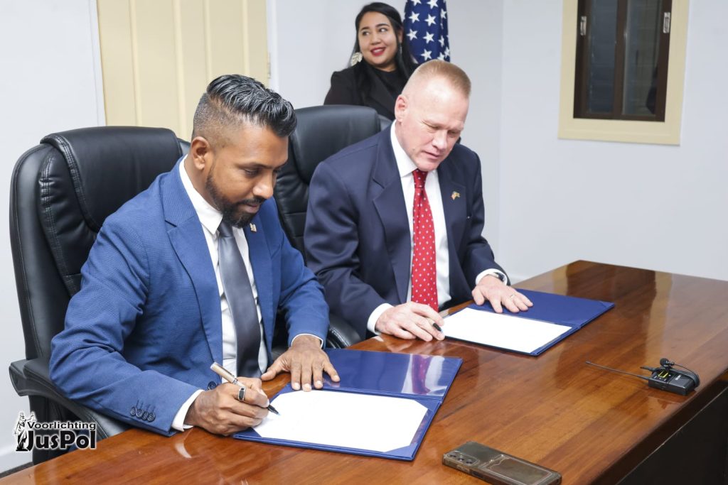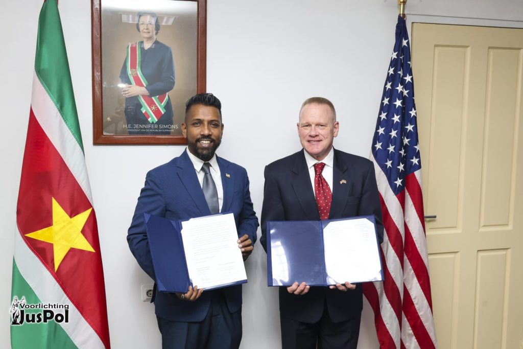 Op donderdag 19 maart 2026 ontving minister Harish Monorath van Justitie en Politie de tijdelijk zaakgelastigde van de Ambassade van de Verenigde Staten in Suriname, Paul Watzlavick. Tijdens dit bezoek vond een ondertekeningsmoment plaats ter voortzetting en uitbreiding van de Letter of Agreement 2011-01, die de samenwerking op het gebied van narcoticacontrole en wetshandhaving tussen beide landen regelt.