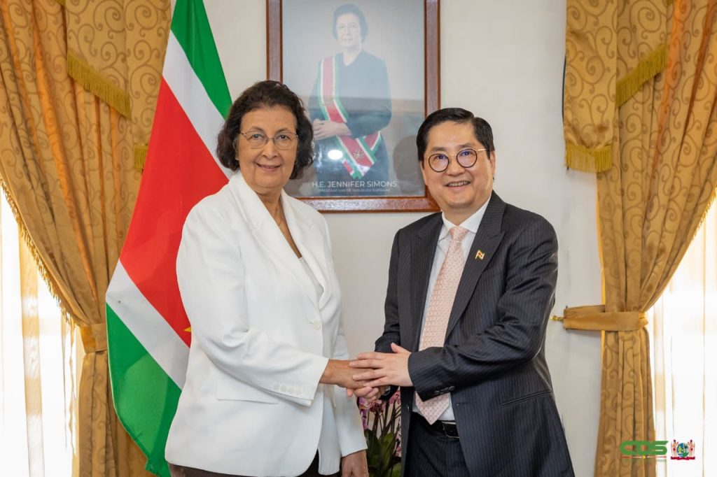 President Jennifer Simons heeft een ontmoeting gehad met Jim Lok, de honorair consul van Suriname in Hong Kong, en Zhang Run, directeur-generaal van de Department of Latin American and Caribbean Affairs van het Chinese ministerie van Buitenlandse Zaken. Bij het onderhoud dat plaatsvond op woensdag 26 november 2025 op het presidentieel paleis waren ook de ministers Melvin Bouva van Buitenlandse Zaken, Internationale Handel & Samenwerking (BIS) en Stephen Tsang van Openbare Werken en Ruimtelijke Ordening (OWRO) alsook Sergio Akiemboto, Chief of Staff van het Kabinet van de President, aanwezig.