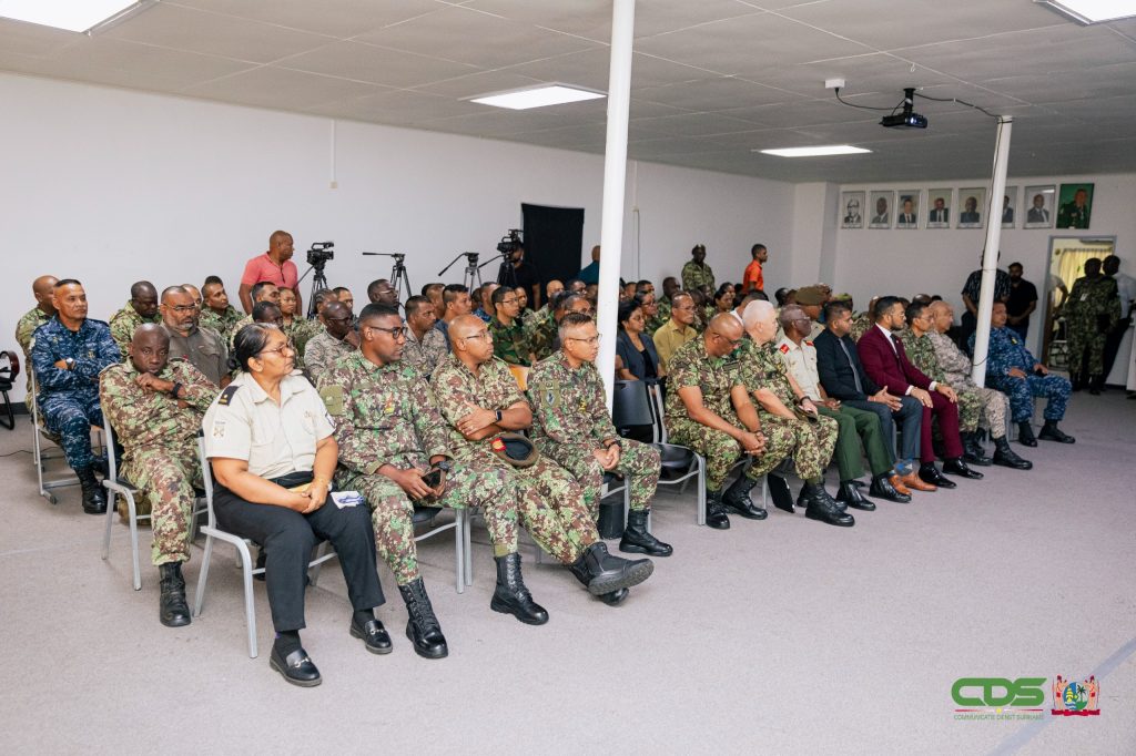 Kolonel Jerry Slijngard gaf een presentatie “veiligheid versterken door opleiden”. Hij onderstreepte dat het IDO de militair ontwikkelt en versterkt als professional, leider en verantwoord burger. “Het leger is niet alleen de bewaarder van onze soevereiniteit, maar ook de beschermer en ondersteuner van het volk is in tijden van nood”, aldus kolonel Slijngard. Het 50-jarig bestaan van het Nationaal Leger markeert volgens hem niet enkel een moment van trots, maar ook van verantwoordelijkheid en vernieuwing. “Door te investeren in opleidingen, trainingen en door te organiseren bouwen we een defensieorganisatie die niet alleen reageert op dreigingen, maar ook voorziet, voorkomt en beheerst”, aldus de kolonel.
