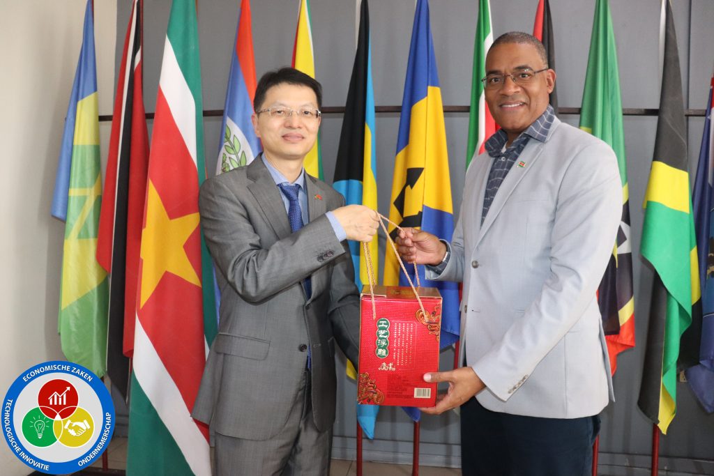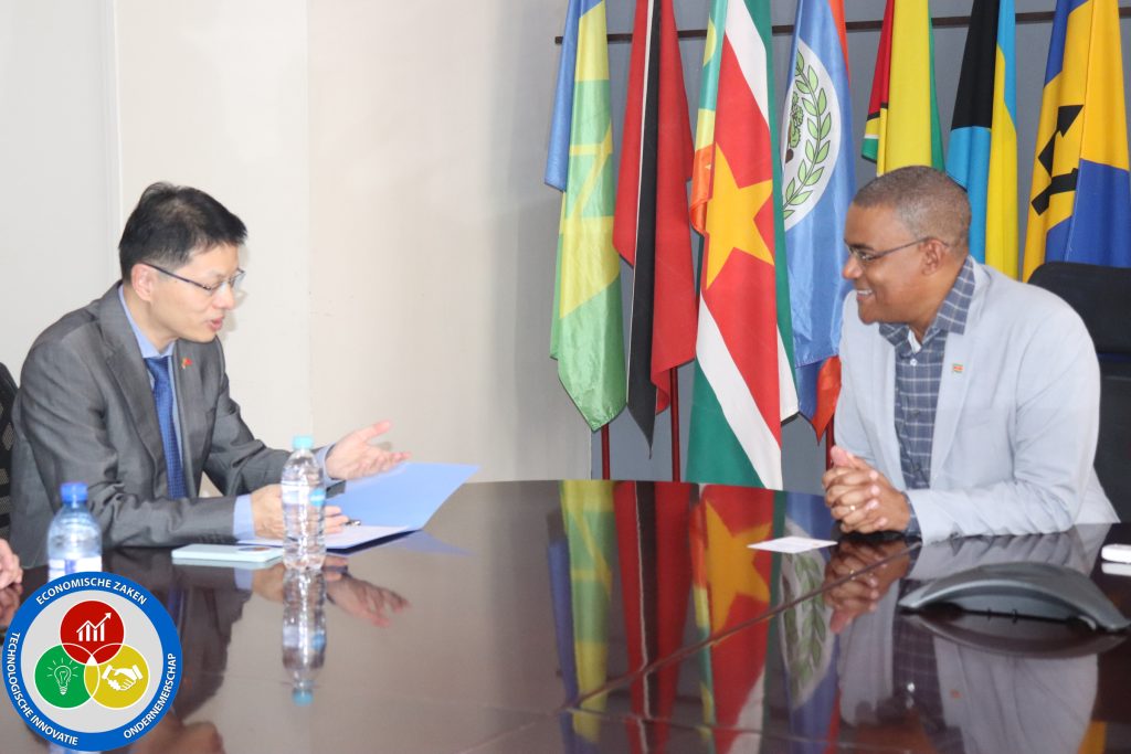 De ambassadeur van de Volksrepubliek China, Lin Ji, heeft een kennismakingsbezoek gebracht aan minister Andrew Baasaron van het ministerie Economische Zaken, Ondernemerschap en Technologische Innovatie (EZOTI). Tijdens de kennismaking werd gesproken over het voortzetten en verder versterken van de bilaterale samenwerking tussen beide landen. Het kennismakingsbezoek heeft plaatsgevonden op vrijdag 14 november 2025 in de vergaderzaal van het ministerie.