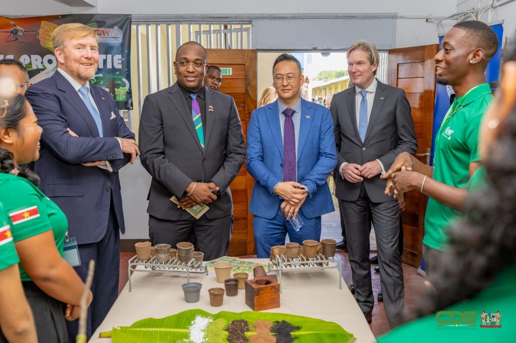 De creatief samengebrachte ideeën over klimaat, water en stedelijke veerkracht van Suriname werden gepresenteerd aan de Koning en Koningin. Tot slot presenteerden studenten van de Anton de Kom Universiteit van Suriname, met name de twee teams die hebben deelgenomen aan de WUR 2025 Food Systems Innovation Challenge, hun creatieve ideeën. Deze interdisciplinaire wedstrijd werd georganiseerd door Wageningen University & Research (WUR) en het Netherlands Food Partnership. De studenten deelden hun inzichten met het koningspaar over hun vernieuwende en duurzame oplossingen om voedselsystemen gezonder, eerlijker en toekomstbestendiger te maken.