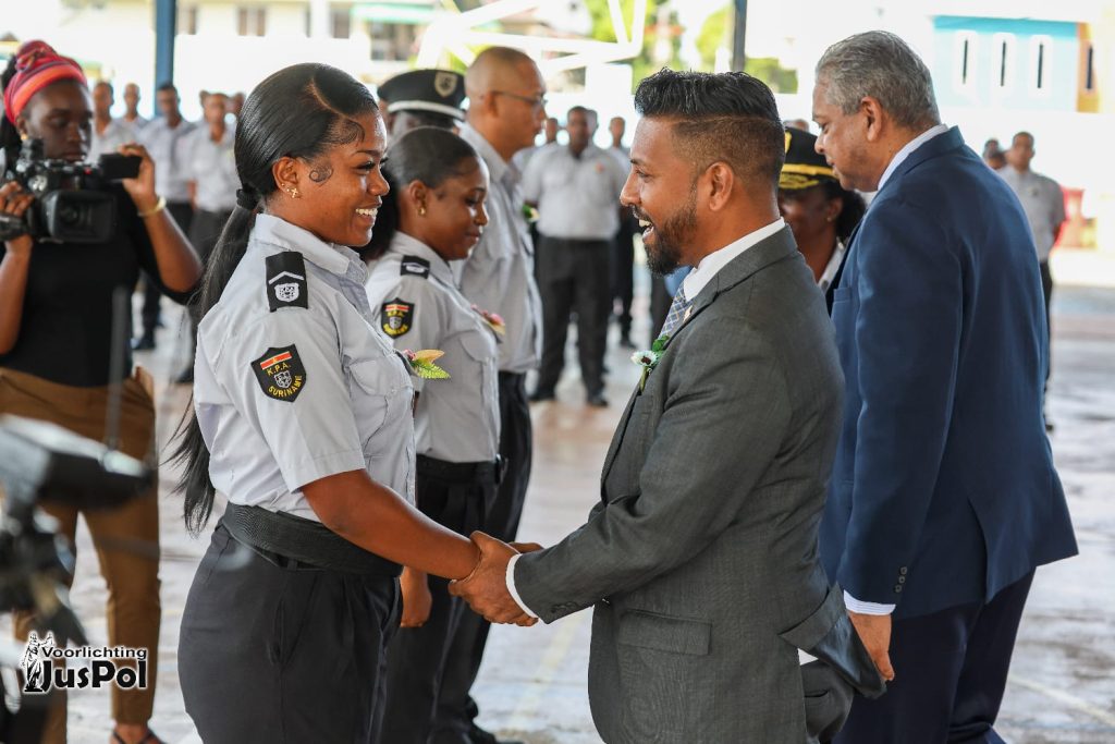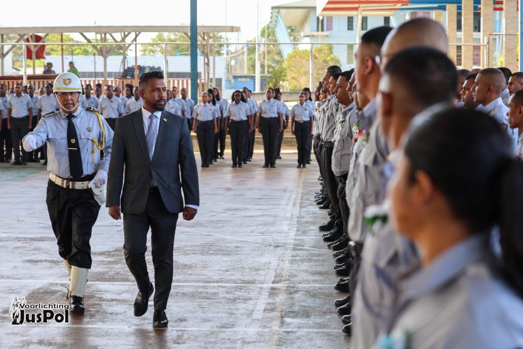 Verder gaf de bewindsman aan dat de regering blijft investeren in de verdere versterking van het korps, onder meer door het terugdringen van de onderbezetting en de werkdruk, alsook door de voorgenomen realisatie van een hoofdkwartier in Paramaribo. Na een moment van gebed legden de rekruten officieel de eed af. De drie best geslaagden werden onderscheiden door minister Monorath, korpshoofd Pané-Alfaisi en de directeur Operationele Diensten van Justitie en Politie.
