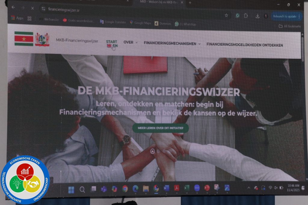 Het Ministerie van Economische Zaken, Ondernemerschap en Technologische Innovatie (EZOTI) heeft vandaag officieel de website Financieringswijzer.sr gelanceerd. Dit platform is ontwikkeld om ondernemers en startende bedrijven in Suriname beter te ondersteunen bij het vinden van beschikbare financieringsmogelijkheden bij banken, fondsen en investeringsprogramma’s. De lancering heeft plaatsgevonden op dinsdag 4 november 2025 in Ballroom van het Lallarookh-gebouw.