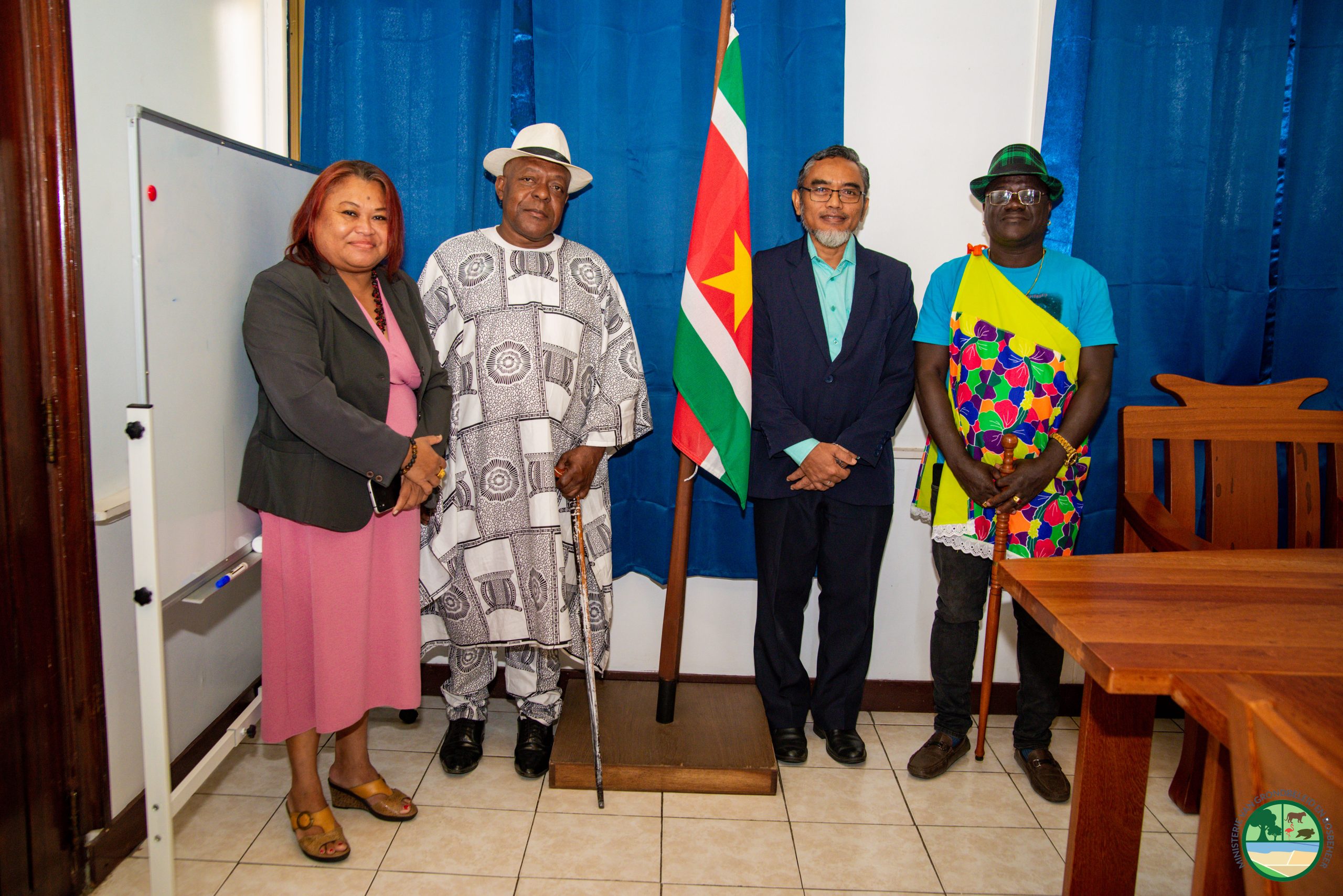 De Granman van de Kwinties, bracht vandaag een bezoek aan minister Stanley Soeropawiro van Grondbeleid en Bosbeheer (GBB) voor een belangrijk overleg over de verdere ontwikkeling van duurzaam toerisme binnen het Centraal Suriname Natuurreservaat (CSNR).