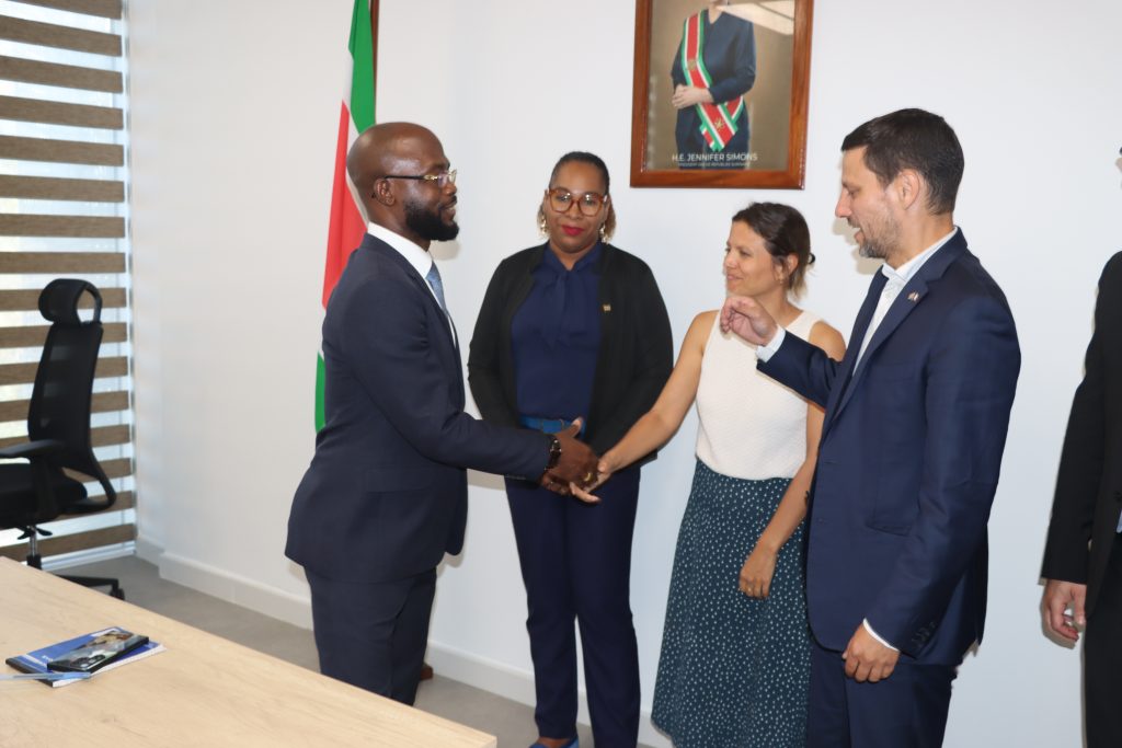 Op maandag 13 oktober 2025 bracht een delegatie van het Franse Ontwikkelingsagentschap (AFD) een officieel werkbezoek aan drs. André Misiekaba, minister van Volksgezondheid, Welzijn en Arbeid. Tijdens dit overleg waren ook drs. R. Gajadhar Sukul, directeur van het ministerie, mw. Grätl Petrisie-Blokland, projectmanager van dit project aanwezig.