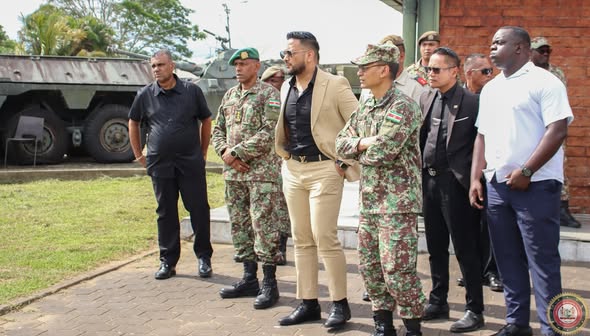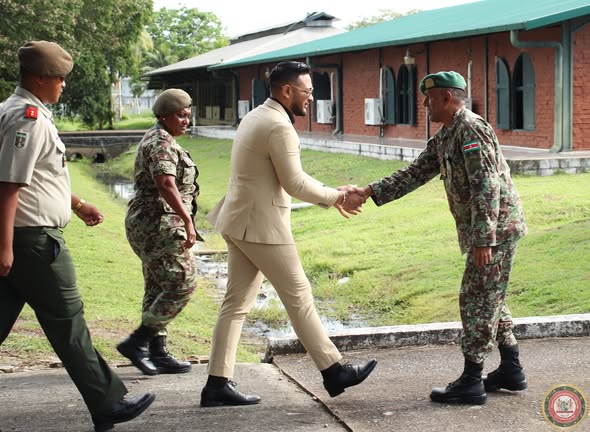 op vrijdag 5 december jl. bracht minister Uraiqit Ramsaran van Defensie een werkbezoek aan de Landmacht (LAMA) van het Nationaal Leger. Naast een presentatie over de werkzaamheden, taken en bevoegdheden van dit krijgsmachtdeel en een rondleiding in de Memre Buku Kazerne, zorgden militairen van dit krijgsmachtdeel ook voor diverse demonstraties. In zijn toespraak aan het LAMA-personeel zei minister Ramsaran attentie te hebben voor de problemen binnen de Landmacht en reeds te hebben aangegeven welke zaken als eerst aangepakt moeten worden. Eén van de zaken die reeds aangepakt is, is de verbetering van de dagelijkse voeding voor de militairen. De tijd van slechte voedingscombinaties behoort hiermee tot het verleden. Ook het traject om te komen tot een betere waardering voor alle militairen heeft zijn aandacht. Hiervoor vroeg hij wel naar de nodige ondersteuning van het personeel. “Als ik bereid ben om voor u te werken, dan vraag ik aan u om mij de kans te geven om het werk te verrichten. Het zijn kleine zaken die een verbetering kunnen brengen. A winsi a achtergrond fu mi a no srudati, no taki dati mi no abi a vaderlandsliefde. Dat wil niet zeggen dat ik geen Sranan dja dja man ben. Laten we de liefde voor ons land tot uiting brengen door de taken gedisciplineerd, correct en liefdevol te blijven uitoefenen. Vergeet één ding niet: deze minister is wel trots op jullie. Maar trots moet je kunnen bewijzen en trots moet je ook verdienen. En ik vraag aan u om correct en gedisciplineerd te blijven”, aldus de minister.