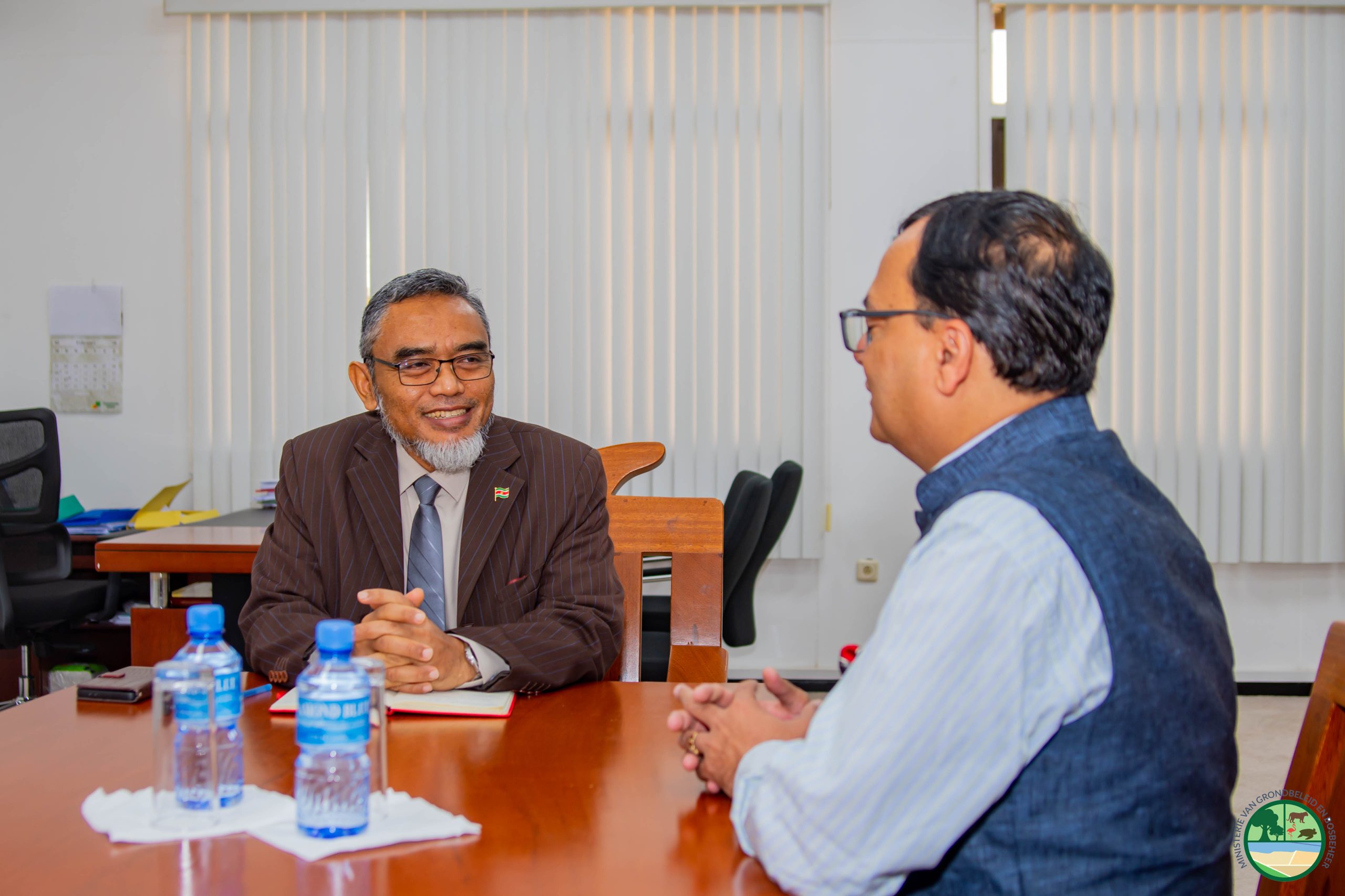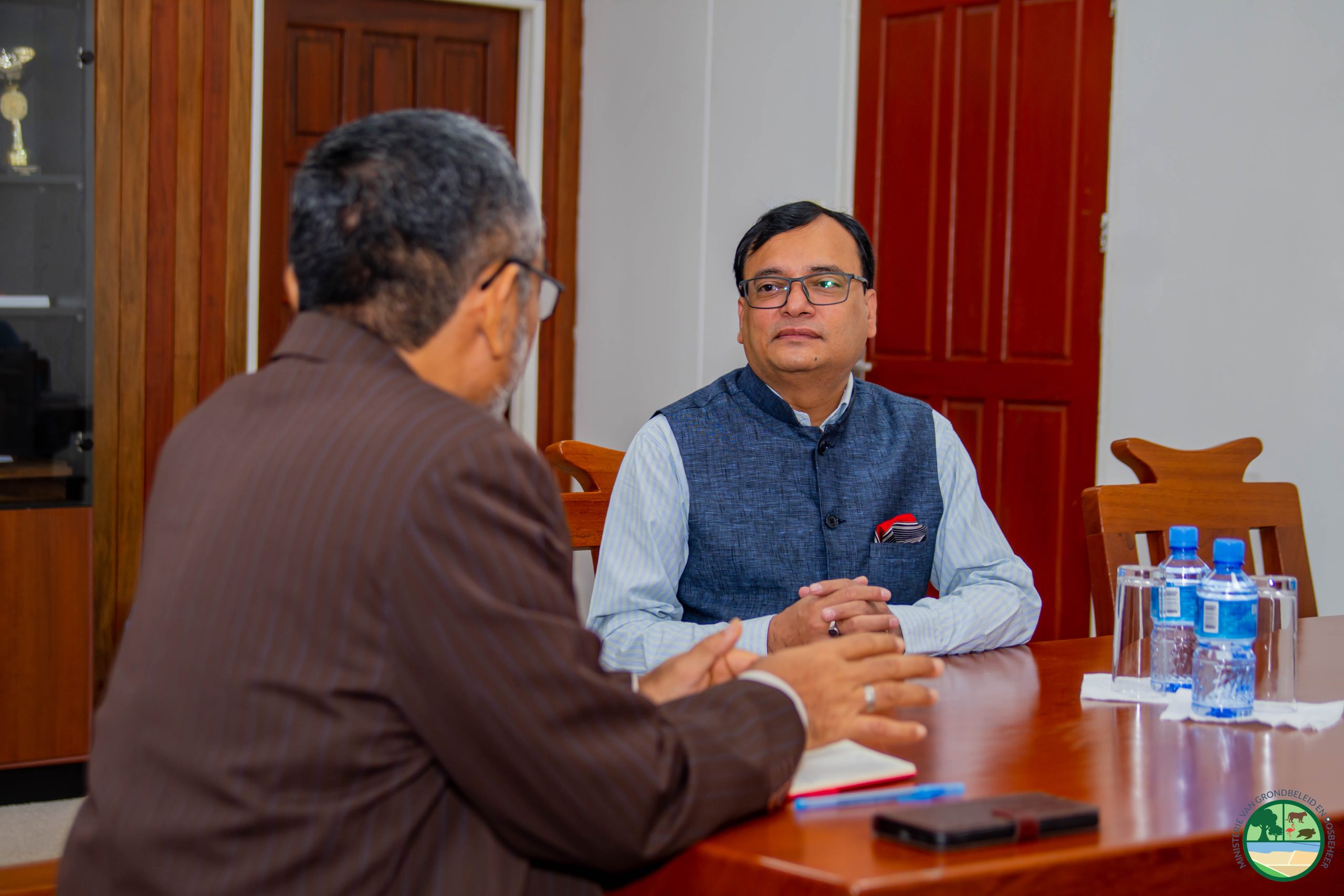 De minister van Grondbeleid en Bosbeheer ontving onlangs de Ambassadeur van India in Suriname, Subhash Prasad Gupta, voor een constructief bilateraal gesprek.