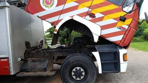 Het blusvoertuig van het Korps Brandweer Suriname (KBS) te Apooera was defect. De minister van Justitie en Politie Harish S. Monorath heeft onmiddellijk financiële middelen
