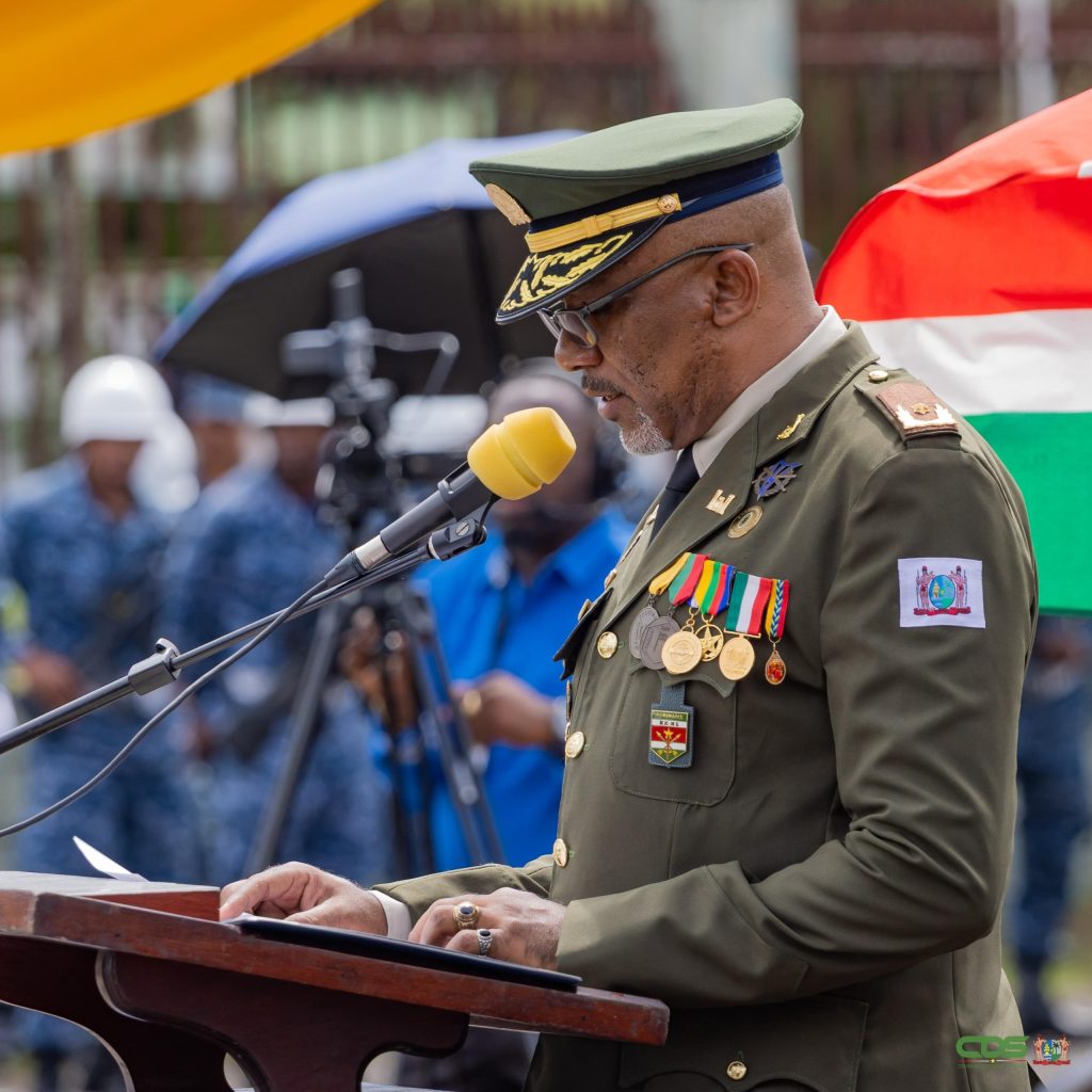 Het Nationaal Leger werd bij deze gelegenheid aangemerkt als zowel staats- als maatschappelijk instituut, nauw verbonden met de nationale ontwikkeling. President Simons onderstreepte in haar toespraak het belang van modernisering en versterking van het defensieapparaat. “De toekomst van ons land vraagt naar een leger dat meegroeit, meedenkt en meebeweegt. U krijgt de verantwoordelijkheid om het leger te leiden en te transformeren tot een deskundige, snel inzetbare en parate organisatie”, aldus de opperbevelhebber.