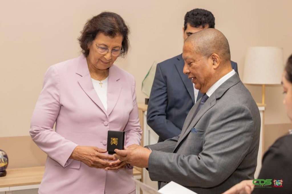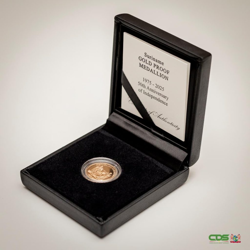 De Centrale Bank van Suriname (CBvS) heeft ter gelegenheid van 50 jaar Staatkundige Onafhankelijkheid van Suriname een speciale gedenkpenning laten slaan. Op vrijdag 28 november 2025 ontving president Jennifer Simons als eerste burger van het land deze bijzondere munt uit handen van CBvS-governor Maurice Roemer. Ook vicepresident Gregory Rusland en parlementsvoorzitter Ashwin Adhin kregen tijdens een korte plechtigheid op het Kabinet van de President een exemplaar overhandigd.