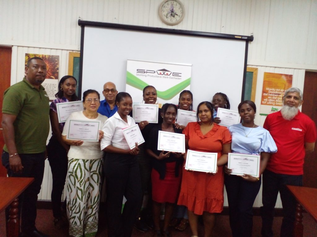 De Stichting Productieve Werkeenheden (SPWE) heeft op woensdag 25 maart 2026 met succes een incompany training Bedrijfsmanagement afgerond. Negen vrouwen, werkzaam binnen verschillende internaten en afdelingen van de Evangelische Broeder Gemeente Suriname (EBGS), ontvingen na drie weken training hun certificaat.