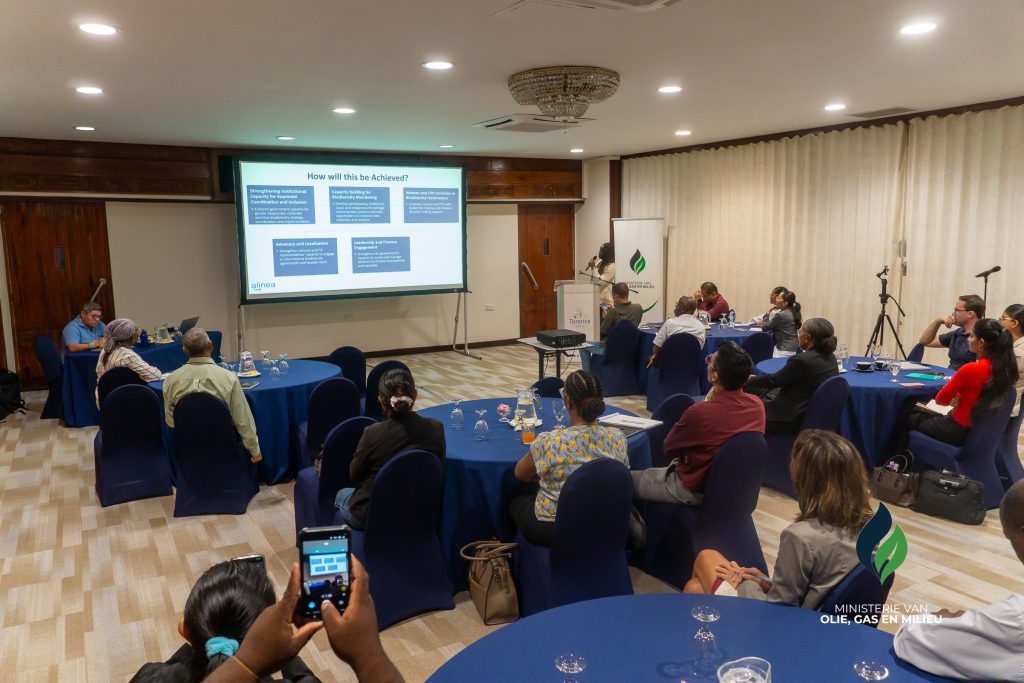 In haar openingstoespraak benadrukte de onderdirecteur Leefomgeving en Ecosystemen van het ministerie van OGM, mevrouw Jiechel Kasandiredjo, het belang van inclusieve en goed gecoördineerde biodiversiteitsgovernance. Zij gaf aan dat biodiversiteit van groot belang is voor onder meer voedselzekerheid, economische ontwikkeling en de klimaatweerbaarheid van Suriname.