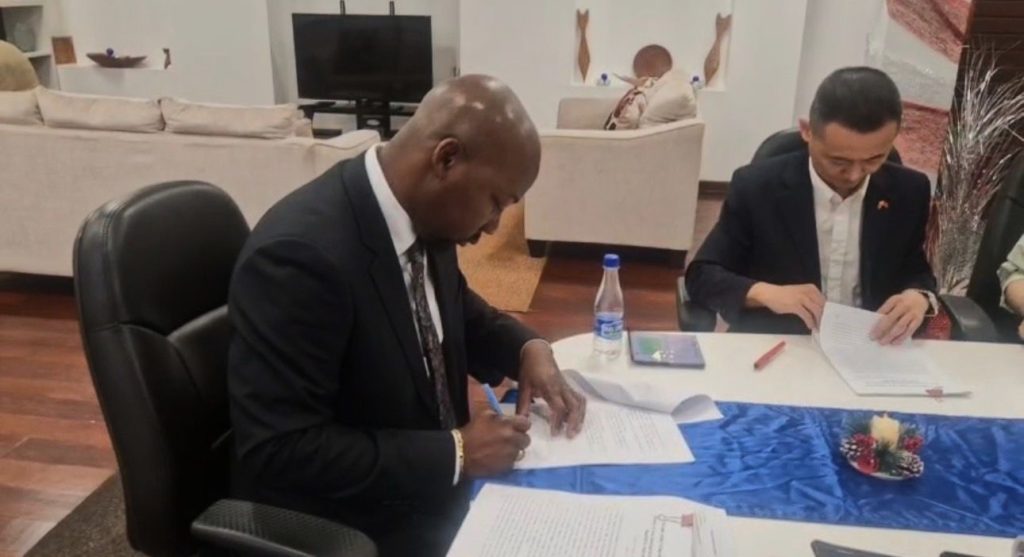 De ondertekening vond plaats op 2 december, tussen de counselor van de Chinese ambassade, Jia jin yi en de minister van Natuurlijke Hulpbronnen (NH), David Abiamofo. Dit gebeurde in aanwezigheid van leden van het directoraat Water onder leiding van directeur Gonda Asadang.