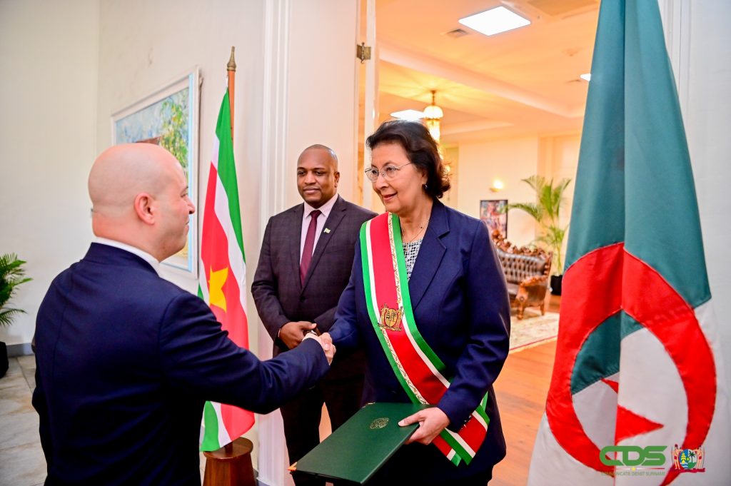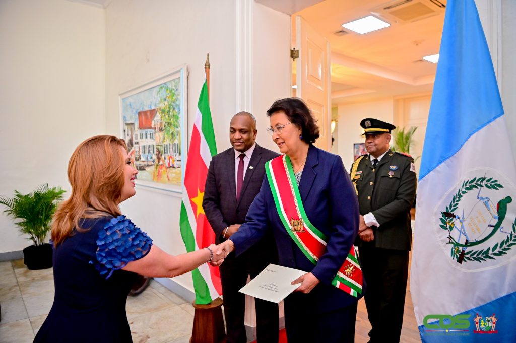 Na vorige week de geloofsbrieven van de diplomaten uit de Dominicaanse Republiek, België en de Europese Unie in ontvangst te hebben genomen, heeft president Jennifer Simons op maandag 13 oktober ook de documenten van de niet-residerende ambassadeurs van Guatemala, Ierland, Zweden en Algerije overhandigd gekregen. Het staatshoofd zegt dat het van belang is om met andere landen samen te werken, omdat zij Suriname kunnen helpen in zijn ontwikkelingsrichting. Ze legt er de nadruk op dat het land internationaal goed neerzetten, kan leiden tot ondersteuning.