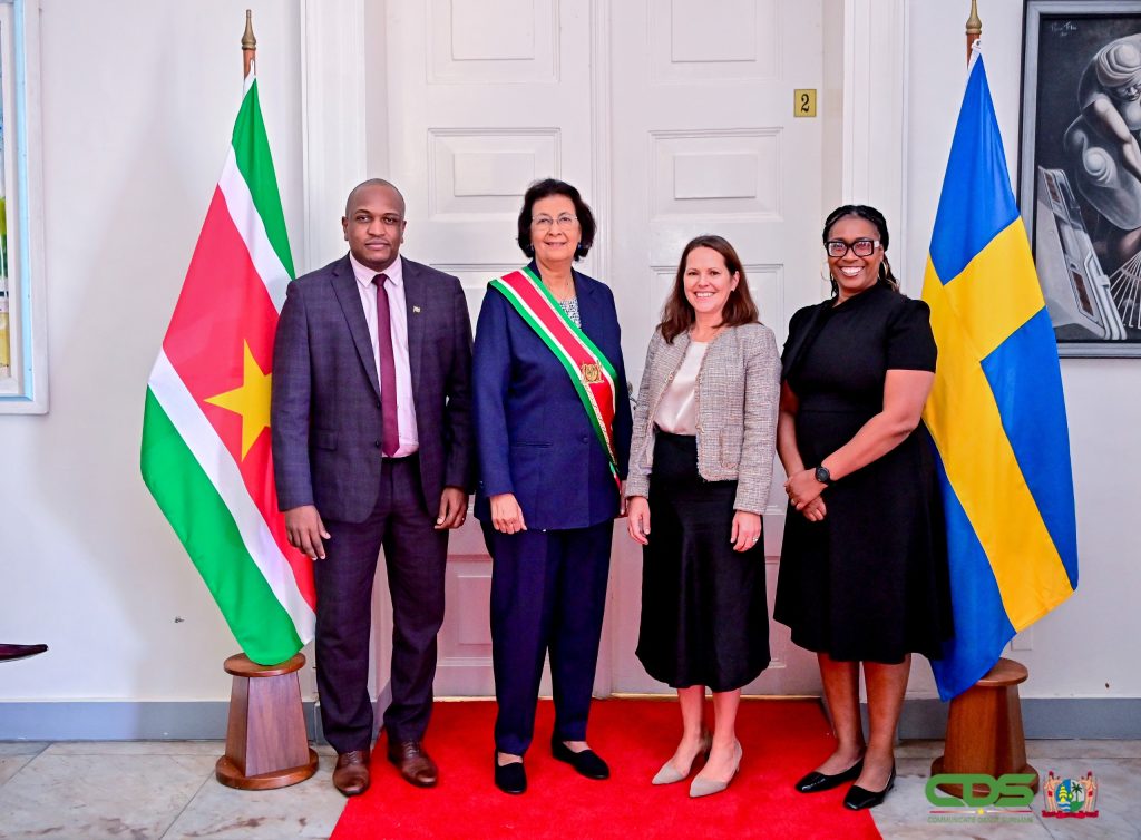 Naast Ierland zet ook Zweden zich in om de effecten van klimaatverandering te mitigeren en landen daarin te ondersteunen. President Simons deelde daarnaast haar eigen ervaring met Zweden: in 1996 heeft ze in het buitenland een ontmoeting gehad met Zweedse parlementariërs, die haar het daaropvolgende jaar hun wetgeving met betrekking tot ouderschapsverlof deden toekomen. Deze wetgeving is aangepast naar Surinaamse omstandigheden en aangenomen in het parlement. Dit geeft volgens het staatshoofd wederom het belang van buitenlandse relaties en samenwerking weer.