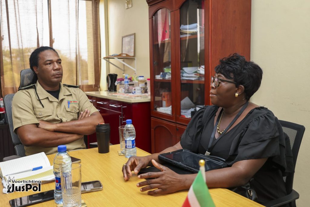 Het waarnemend hoofd van het Bureau Slachtofferzorg, Grasella Enny, heeft op donderdag 23 april 2026 een werkbezoek gebracht aan de districtscommissaris van Brokopondo, Gregory Van der Kamp.