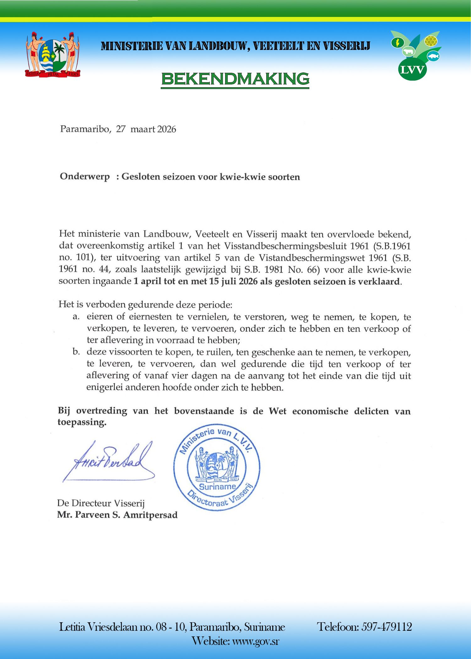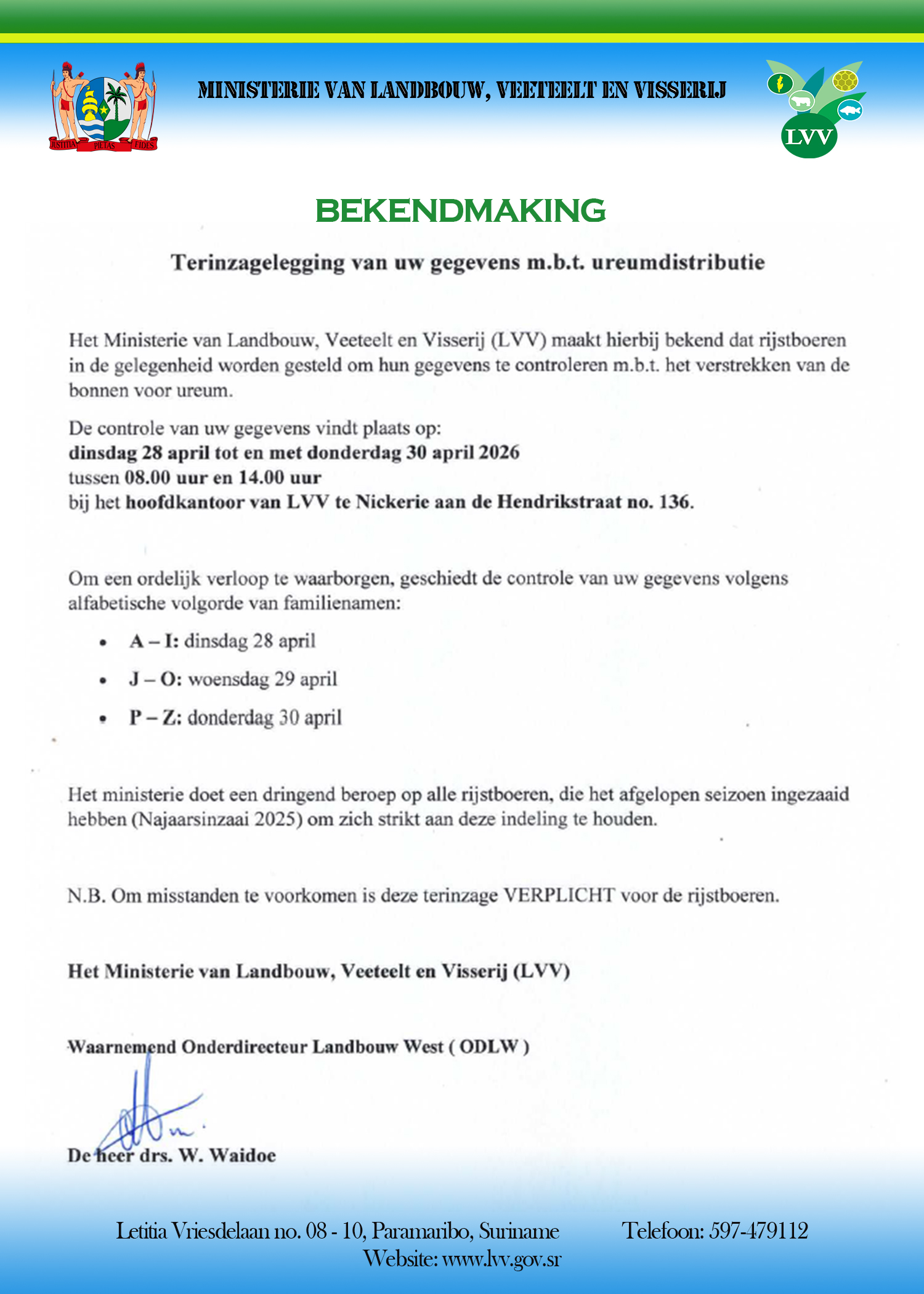 Voordragen van personen voor een ereonderscheiding in het kader van de verjaardag van de Republiek Suriname op 25 november.