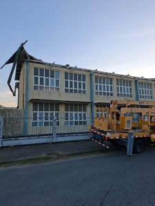 Rukwind veroorzaakt zware schade aan dak Christus Koningschool
